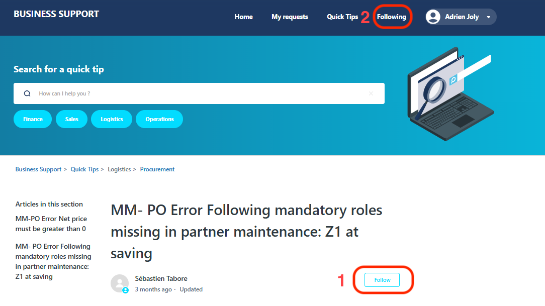 First, you need to 'follow' the quick tip by clicking on the 'Follow' button as displayed below (#1 in red).